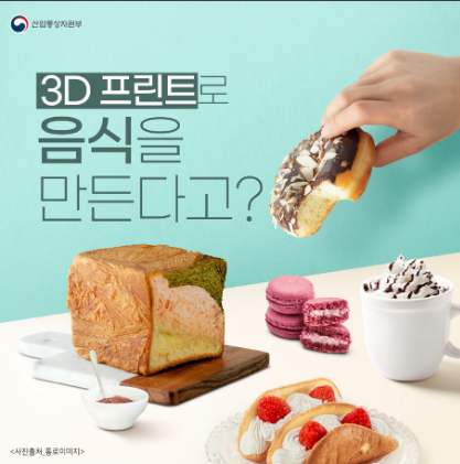 3D 푸드 프린팅 기계에 레시피를 입력하고 재료를 넣어주면 기계가 순서와 모양에 따라 재료를 한 층씩 쌓아 3차원으로 재구성하는 4차 산업혁명의 주요 기술이다.