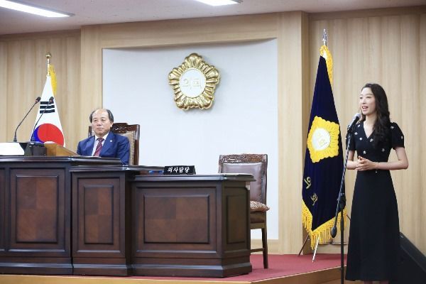 손태영 의장은 “재능기부를 통해 노래를 해주신 소프라노 주선언 씨에게 감사드린다.”며 “앞으로도 이러한 시간이 의원과 공직자 여러분의 예술적 소양을 쌓는데 보탬이 되어 따뜻한 마음으로 군민께 다가가 보다 행복하고 질 높은 행정서비스로 이어질 것을 기대한다.”고 말했다.