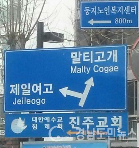 제일여고의 영문표기가 ‘Jeileogo'로 오기(誤記)되어진 채 몇 년을 버티고 있다.