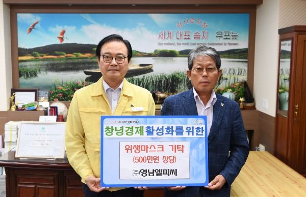 ㈜영남엘피씨(대표 황용주)는 지난 11일 창녕군청을 방문해 500만원 상당의 식품접객업소용 투명 위생마스크를 기부했다.