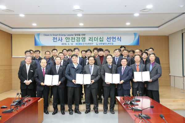 한국남동발전(주)(사장 허엽, 대표노조 위원장 여인철)는 지난 12일 진주 본사에서 산업재해와 중대산업사고 예방을 위한 안전경영 리더십 그룹 결성 및 선언식을 개최했다.