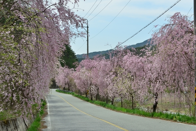 바람에 살랑살랑 흔들리는 벚꽃을 천천히 드라이브하면서 감상하고 싶다면 꼭 북상면 병곡 수양벚꽃길에 방문해 보길 바란다. 우리가 흔히 보는 벚꽃보다 진한 분홍빛의 꽃잎이 바람에 몸을 맡긴 채 흩날리는 벚꽃비를 만날 수 있다.