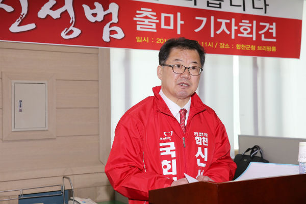 새누리당 신성범 예비후보(경남 산청·함양·거창·합천)는 3일 오전 11시 합천군청 브리핑룸에서「제20대 총선」공식 출마 기자 회견을 가졌다.