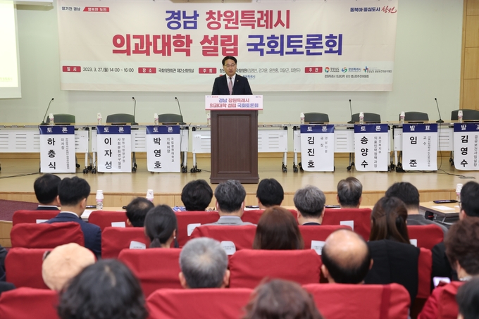 경남도는 27일 오후 국회의원회관 제2소회의실에서 최만림 경남도 행정부지사, 홍남표 창원특례시장, 창원지역 국회의원인 김영선, 강기윤, 최형두 국회의원, 도의원·창원특례시의원, 창원특례시 범시민추진위원회 위원 등 200여 명이 참석한 가운데 ‘경남 창원특례시 의과대학 설립 국회토론회’를 개최했다.