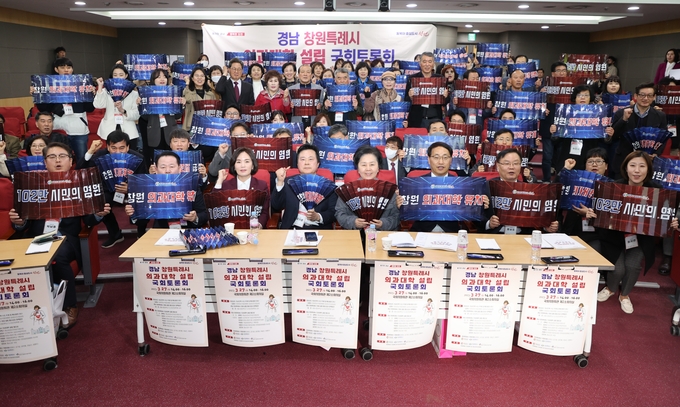 경남 창원특례시 지역 국회의원(김영선, 강기윤, 윤한홍, 이달곤, 최형두) 5명과 경남도, 창원특례시가 공동 주최한 ‘국회토론회’에서는 각계각층 인사가 대거 참여해 창원 의대 설립에 대한 필요성과 열망을 보여줬다.