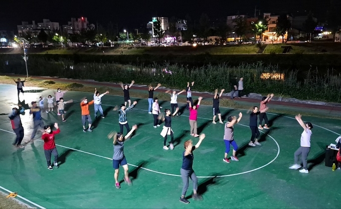 야간 야외 신체활동 프로그램은 작년 한 해 지역주민들의 큰 호응을 받았던 프로그램으로 올해도 전문 강사의 지도 아래 4월 11일부터 11월 26일까지 8개월간 주 3회 강변생활체육공원(KT플라자 앞)과 스포츠파크 2곳에서 신나는 음악과 함께 근력 강화 체조를 진행할 예정이다.
