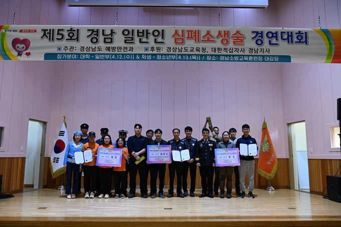 심사결과, 대학·일반부는 양산소방서 대표 롯데글로벌로지스팀이 경상남도지사상을, 학생·청소년부는 거창소방서 대성일고등학교 대표 엔젤인널스팀이 경상남도 교육감상을 수상하여 최우수 팀에 올렸으며, 오는 6월 22일 소방청 주관으로 세종특별자치시에서 열리는 ‘제12회 전국 일반인 심폐소생술 경연대회’에 경남 대표로 출전하게 된다.