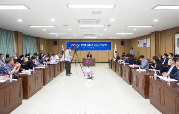 강석주 통영시장은 7월 9일(목) 오전 11시 통영시청 회의실에서 민선 7기 2주년에 즈음하여 언론인과의 간담회를 개최했다.