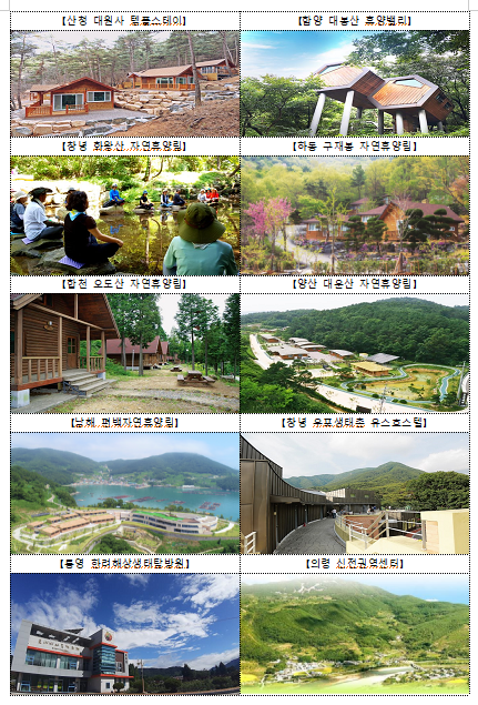 ▲ 하동 구재봉자연휴양림 = 숲속에서 숙박하며 모험과 체험 그리고 피서를 동시에 즐길 수 있는 종합휴양밸리다. 맞춤형 숙박시설과 각종 편의 시설을 갖춰 일상에서 벗어나 힐링과 여유를 즐길 수 있다.
