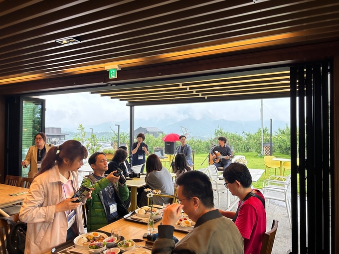 이어진 코스로 해플스팜사이더리를 방문해 거창군 특산물인 사과를 주재료로 만든 사과햄버그스테이크와 애플사이더로 점심을 즐겼고 식사 후에는 자유로운 분위기 속에서 거창군 해아림 산업관광 공연팀 ‘거창버스킹’의 음악공연이 펼쳐졌다.