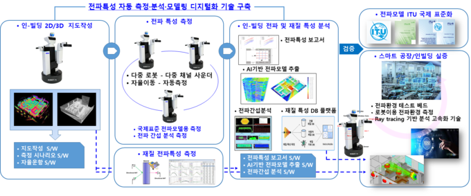 이에, 전파측정 자율로봇과 인공지능 기술을 개발해 전파 음영지역을 측정・분석하고, 전파간섭을 피하면서 가장 효율적인 전파 단말기 구축 위치를 파악해 스마트공장 내 초저지연・초고속・초광대역을 실현하는 최적의 5G 전파망 설계 기술을 개발할 계획이다.