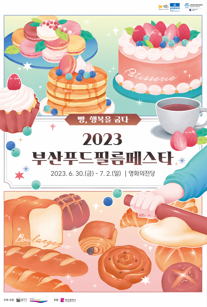 ‘빵, 행복을 굽다’를 주제로 진행되는 이번 2023 BFFF에는 세 개 부문(블랑제리, 파티스리, 무비 다이닝)으로 나눠 음식과 관련된 다양한 장르의 영화 9편을 선보인다.