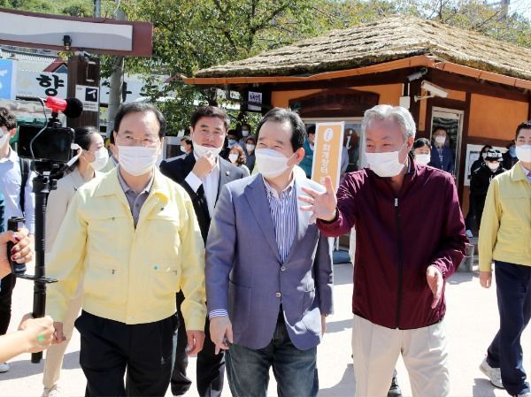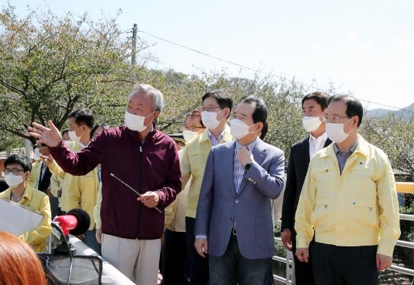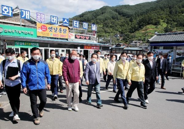 정 총리의 이번 화개장터 방문에는 조명래 환경부장관, 이재욱 농림축산식품부 차관, 김계조 행정안전부 재난안전본부장이 함께 했으며, 김경수 경남도지사와 윤상기 하동군수, 하영제 국회의원이 총리 일행을 맞았다.