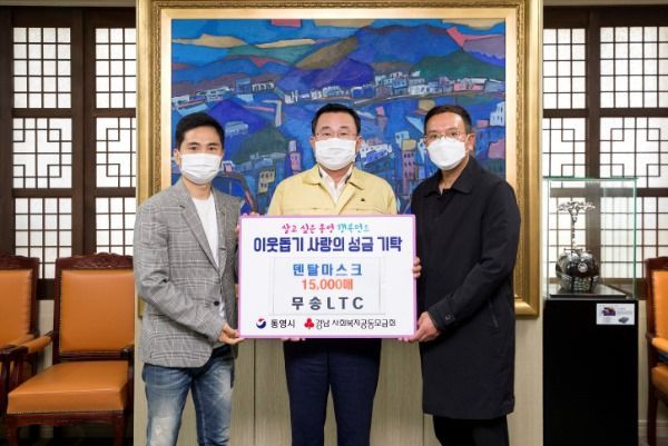 경주시 소재 무송엘티씨(대표 이홍석)는 10월 7일 이웃돕기 성품으로 덴탈마스크 15,000매를 통영시에 기탁했다.