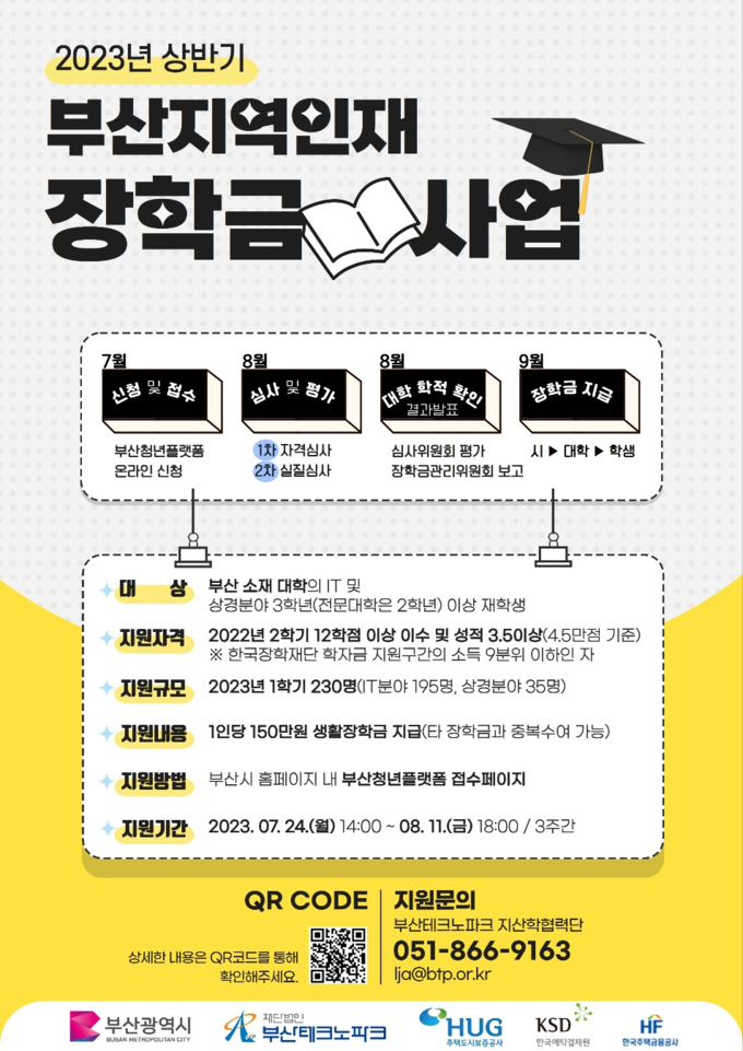 [경남도민뉴스] 부산시(시장 박형준)는 7월 24일부터 8월 11일까지 3주간 ‘2023년 상반기 부산지역인재 장학금’ 지원 신청을 받는다고 밝혔다.