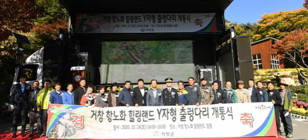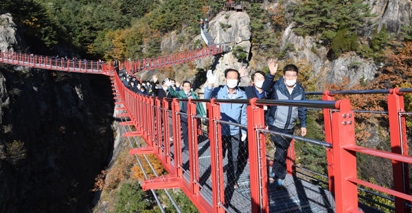 구인모 거창군수와 김종두 거창군의회 의장, 경남도의원, 거창군의원, 각급 기관단체장, 관광약자인 장애인 등 200여 명이 참석한 가운데 ‘거창Y자형 출렁다리’ 개통식을 열었다.