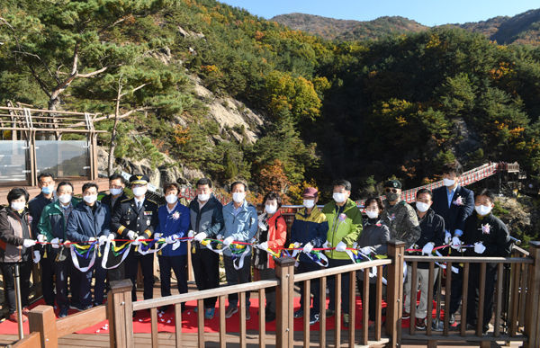 이날 개통식은 경과보고, 내빈축사, 테이프 커팅, 출렁다리 및 무장애데크 투어, 웰니스 프로그램 체험 순으로 진행됐으며, 특히, 장애인과 노약자도 쉽게 이용할 수 있는 숲길인 무장애데크 투어는 관광약자인 장애인과 함께해 의미를 더했다.