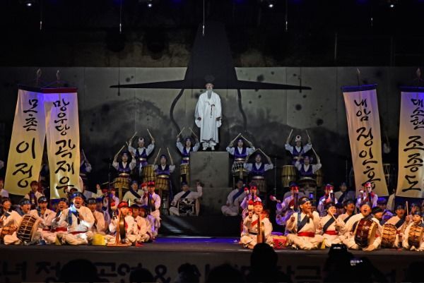 이날 산청 마당극마을 야외특설무대에서는 큰들의 창작 마당극 ‘남명’과 ‘도민 100명의 풍물놀이’가 펼쳐졌다.