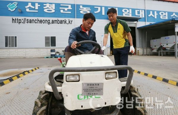 (산청/정우태 기자) = 산청군이 시행 중인 농기계 임대사업이 고가의 농기계 구입이 어려운 농업인들에게 효자노릇을 톡톡히 하고 있다. 특히 농번기가 시작된 지난 4월부터는 조기출근 및 휴일근무도 운영해 농업인들에게 좋은 반응을 얻고 있다.
