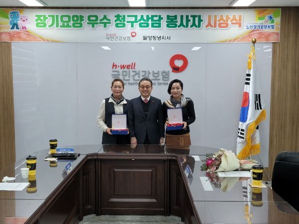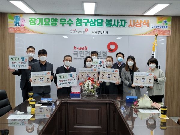 [경남도민뉴스] 국민건강보험공단 밀양창녕지사(지사장 이건형)는 11월 17일 지사 회의실에서 장기요양기관 우수 청구상담 봉사자 시상식을 개최하였다.