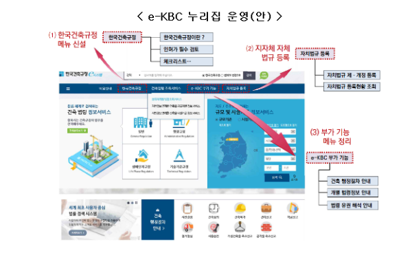 개선 = 허가 시 반드시 확인해야 하는 법령, 지역․용도에 따라 추가 확인이 필요한 법령 등으로 구분한 한국건축규정을 마련하고, 일반국민도 손쉽게 확인할 수 있도록 온라인(e-KBC)으로 제공