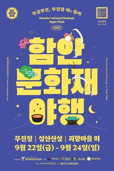 ‘문화재 야행’은 문화재청 공모사업으로, 올해가 함안에서 개최되는 3번째 사업이다. 이번 함안문화재 야행은 '무궁무진 무진정 야(夜)들이'이라는 주제로 ‘야시, 야경, 야사, 야로, 야설, 야식’이라는 6가지 테마로 프로그램으로 구성되었으며, 올해 함안문화재 야행은 2년간 모니터링 결과와 관객 설문조사에서 받은 피드백을 바탕으로 세부내용을 더욱 강화하여 진행 할 예정이다.“