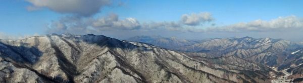 올 겨울 최강 한파를 보인 14일 경남 거창군 북상면 남덕유산 능선이 밤사이 내린 눈으로 하얀 모습을 하고 있다.
