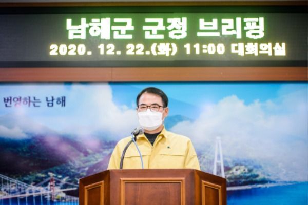 [경남도민뉴스] 장충남 남해군수는 22일 군정 정례브리핑을 열고 코로나 19 위기 극복을 위한 소상공인 지원대책 및 2020년 군정 성과와 2021년 목표를 군민들에게 보고했다.