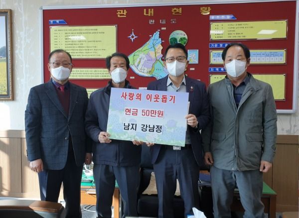 손전식 남지읍장은 “매년 성금을 기탁해주신 강남정 회원들에게 감사를 드리며, 소외되고 어려운 생활을 하고 있는 복지사각지대 가구를 위해 소중히 사용하겠다”고 전했다.