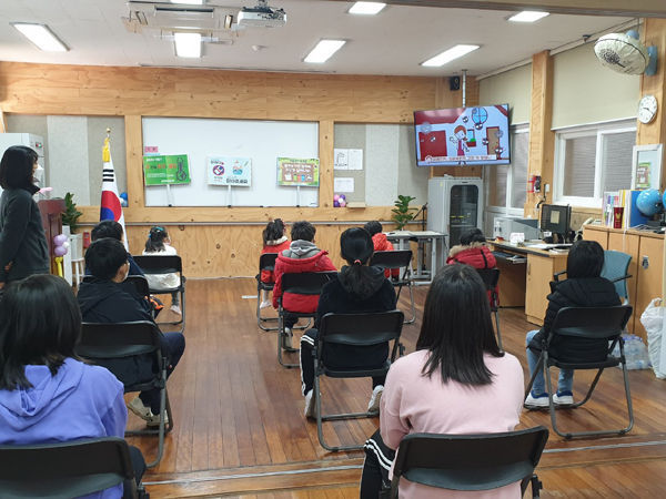 유치원을 비롯해 전교생 13명이 모두 참여한 행사에서는 캠페인에 앞서 우리가 직접 체험하고 있는 지구온난화로 인한 기후위기 현상들을 찾아보고 지구온난화의 원인과 실천 방법들을 소개하는 영상을 통해 기후위기 대응 교육을 실시했다.