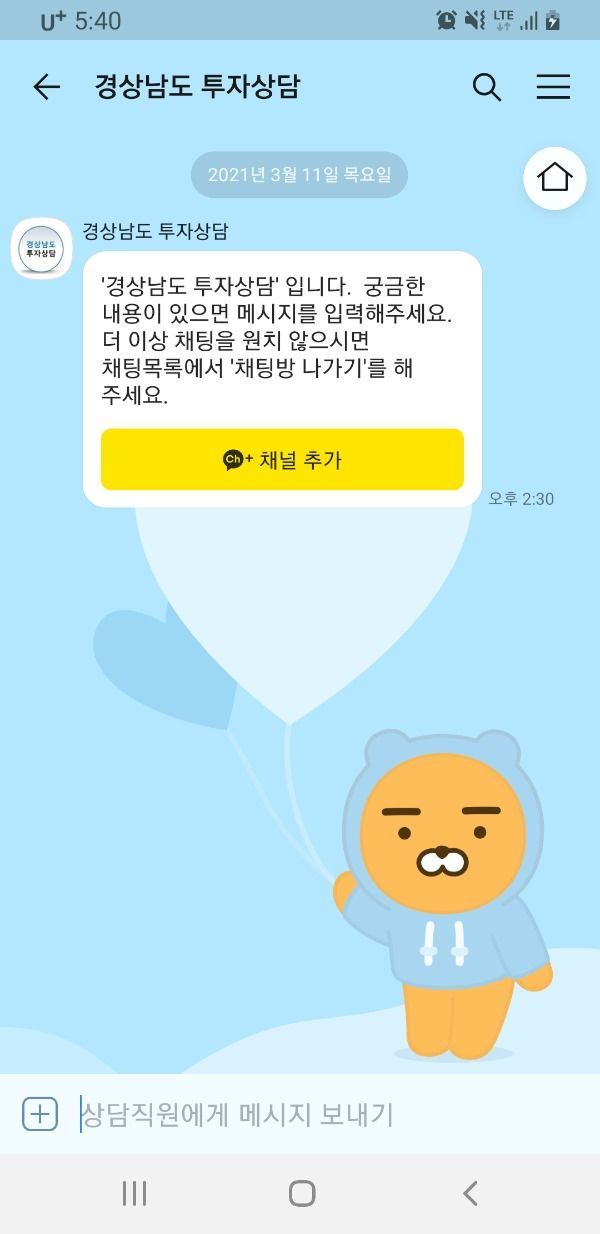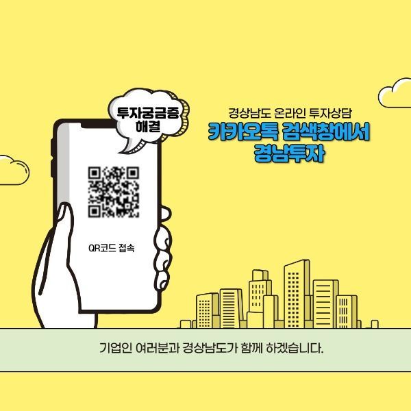 [경남도민뉴스] 스마트 정보화시대에 맞춰 기업과 신속한 쌍방향 의사소통을 위해 카카오톡 채널을 활용한 온라인 투자상담 서비스를 실시한다고 밝혔다.