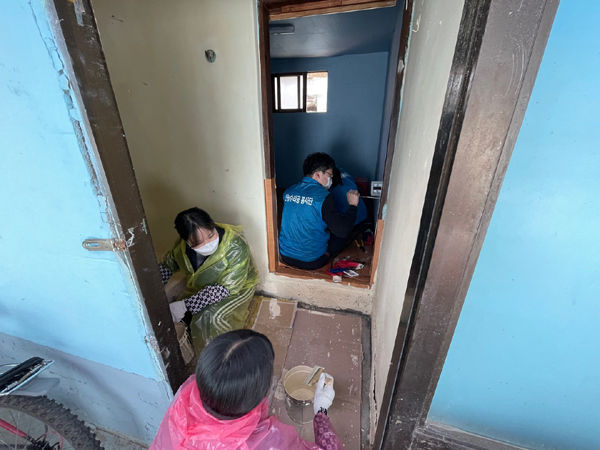 이날 진행한 봉사활동은 주거 취약계층 보금자리 개선사업으로, 밀양시시설관리공단, 내이동 행정복지센터, 더굿세이브 3개 기관이 쪽방 거주자 보금자리를 개선코자 협약을 맺고 진행하는 사업이다.