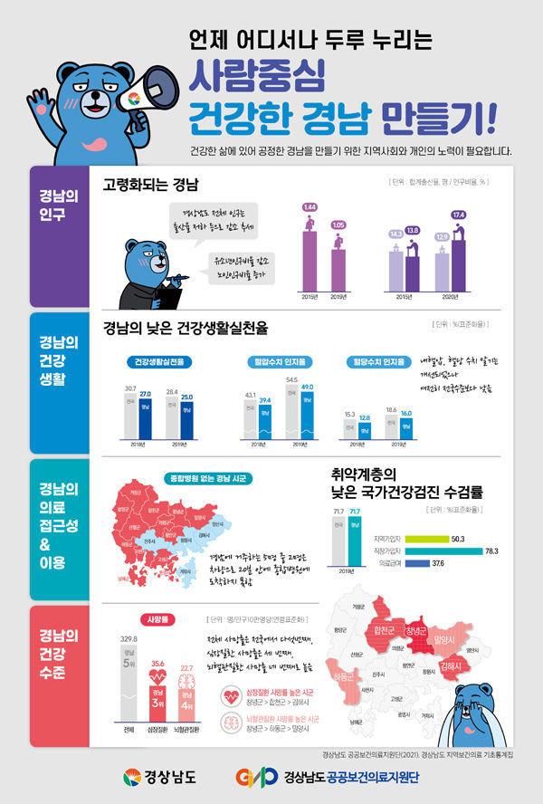 한편, 경상남도 지역보건의료 기초통계집은 경상남도 공공보건의료지원단 누리집(http://gnpi.or.kr) ‘커뮤니티 자료실’란에 게시해 도민 누구나 자료를 열람하고 받을 수 있다.
