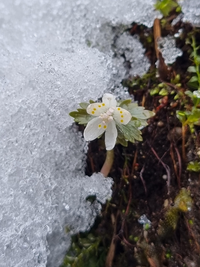금원산생태수목원은 거창군 내 해발 900미터(m) 고산 지역에 있는 전문수목원이다. 이곳에는 지난 겨우내 쌓인 잔설이 아직 남아 있지만, 동토의 시간을 견뎌낸 너도바람꽃이 펴 봄이 왔음을 알려준다.