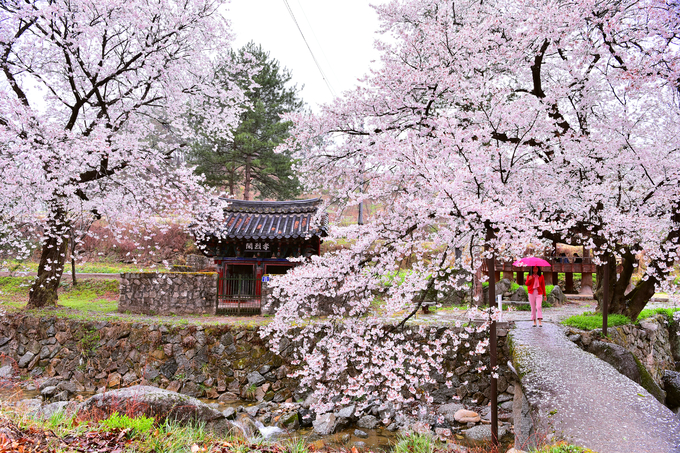가장 먼저 추천한 곳은 거창읍 장팔리 곰실마을에 위치한 덕천서원이다. 거창군의 오래된 벚꽃명소로 연못을 품은 서원 전체가 벚꽃나무가 둘러싸여 장관을 이루고 있어, 가족들과 함께 간식을 즐기면서 나들이 할 수 있는 장소로 꼽힌다.