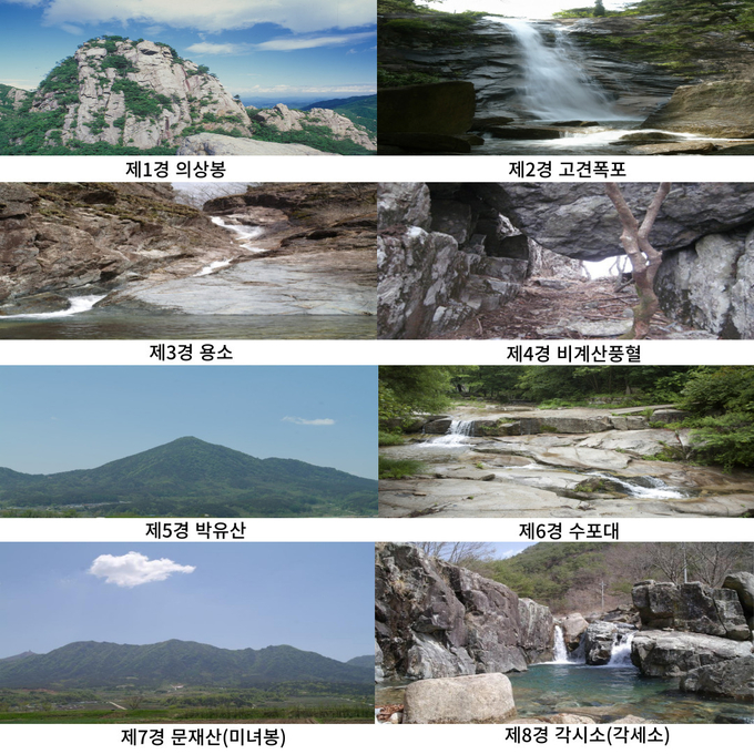 가조 8경은 △제1경 의상봉 △제2경 고견폭포 △제3경 용소 △제4경 비계산 풍혈 △제5경 박유산 △제6경 수포대 △제7경 문재산(미녀봉) △제8경은 각시소(각세소)로 가조면의 대표적인 관광명소로 가꾸어 나갈 계획이다.