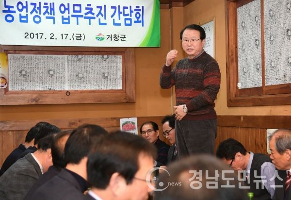 (거창/최병일) = 거창군(군수 양동인)은 지난 17일 관내 식당에서 양동인 군수와 NH농협 군지부장 및 관내 농협조합 운영협의회 위원들이 참석한 가운데, 농업정책의 원활한 추진을 위한 간담회를 가졌다고 20일 밝혔다.