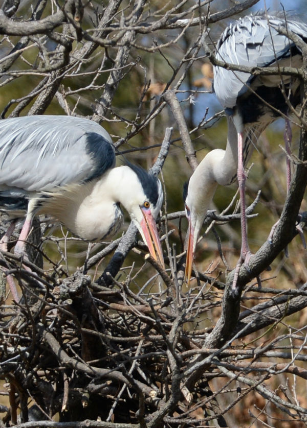 13일 경남 거창군 거창읍 학리마을에 왜가리가 봄을 맞아 둥지를 틀고 새끼를 낳을 준비로 나뭇가지를 물어 나르고 있다.