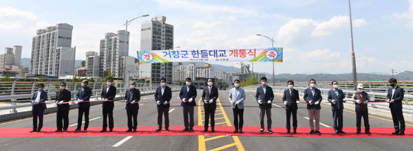 그 결과, 지난 5월 13일 거창읍의 남·북을 잇는 6번째 교량인 한들대교가 마침내 개통식을 갖고 그 위용을 당당하게 드러냈다.