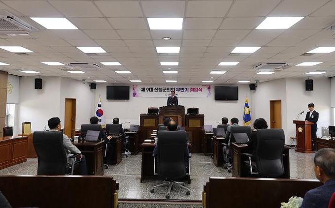 또한, 상임위원장에는 의회운영위원장 안천원 의원(무소속), 총무위원장 이영국 의원(국민의힘), 산업건설위원장 김재철 의원(국민의힘)을 선출하여 제9대 산청군의회 후반기 원 구성을 마쳤다.