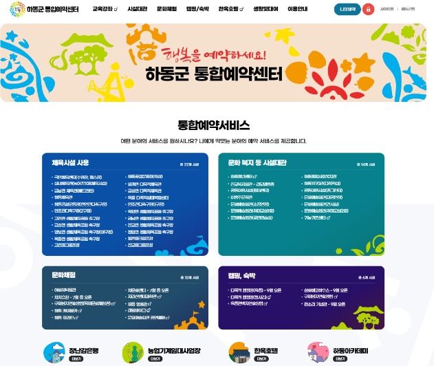 한편, 통합예약센터는 하동군청 홈페이지에 접속하여 ‘통합예약센터’ 메뉴를 선택하면 확인할 수 있다.