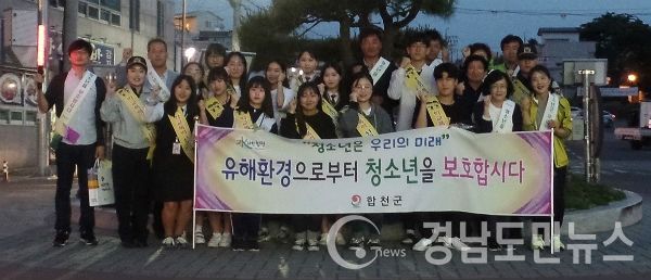 (합천/권연홍 기자) = 합천군(군수 하창환)은 2017년 청소년의 달을 맞이하여 지난 11일 군청·경찰·민간 합동으로 청소년유해환경 개선활동 실시했다고 12일 밝혔다.