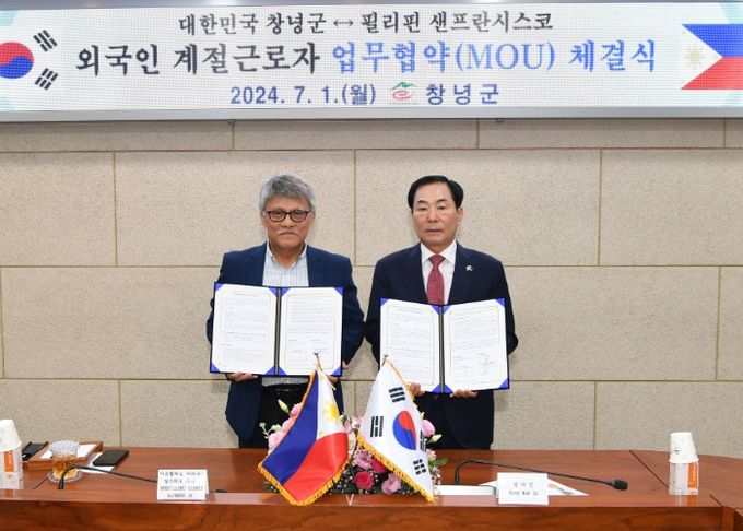 [경남도민뉴스] 창녕군은 지난 1일, 필리핀 샌프란시스코와 외국인 계절근로자 도입을 위한 업무협약(MOU)을 체결했다.