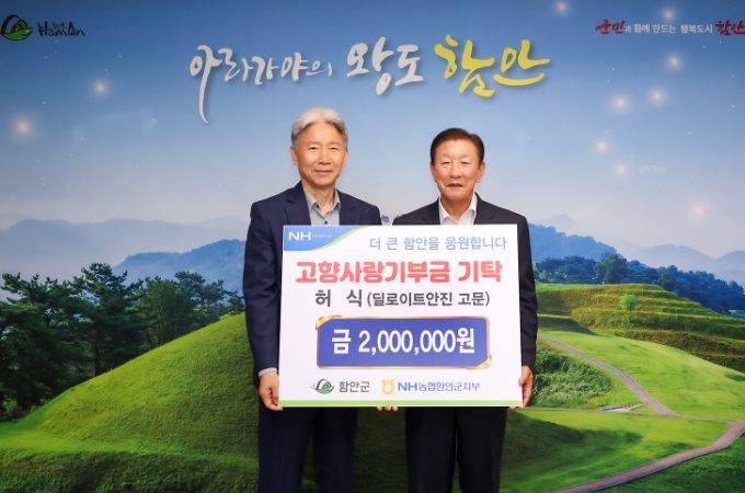 이에 조근제 함안군수는 “오랜 시절 인연으로 함안에 대한 깊은 관심과 애정을 표현해주신 허식 전 회장직무대행님께 진심으로 감사드린다”며 “소중한 기부금은 기부자와 주민 모두 만족할 수 있는 주민 복리증진 사업에 사용하겠다”고 화답했다.