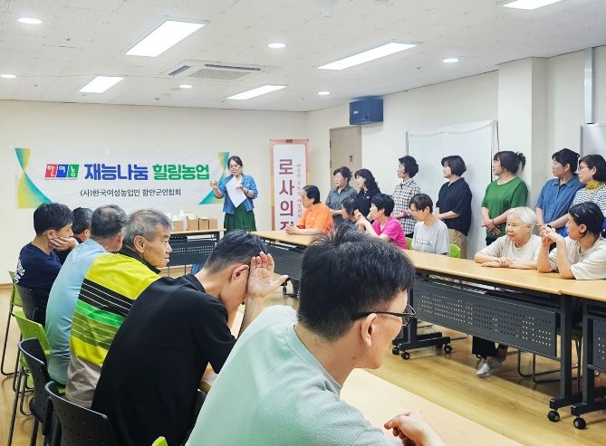 [경남도민뉴스] (사)한국여성농업인 함안군연합회는 지난 1일 함안군 산인면 지역 사회복지시설 로사의 집에서 장애인들과 함께하는 ‘재능나눔 힐링농업 행사’를 개최했다.