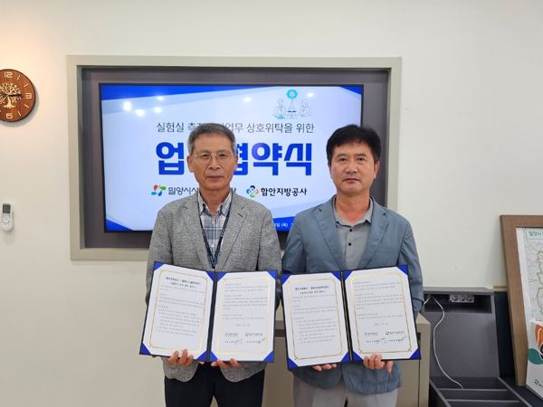 [경남도민뉴스] 밀양시시설관리공단은 지난 4일 함안지방공사(사장 김재영)와 시험분석 상호 위탁에 관한 업무협약을 체결했다고 밝혔다.