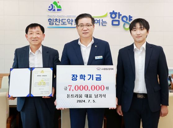 [경남도민뉴스] 함양군은 제6회 청정축산 환경대상에서 최우수상을 수상한 돈트리움 남기석 대표가 시상금 700만원 전액을 (사)함양군장학회에 기탁했다고 5일 밝혔다.