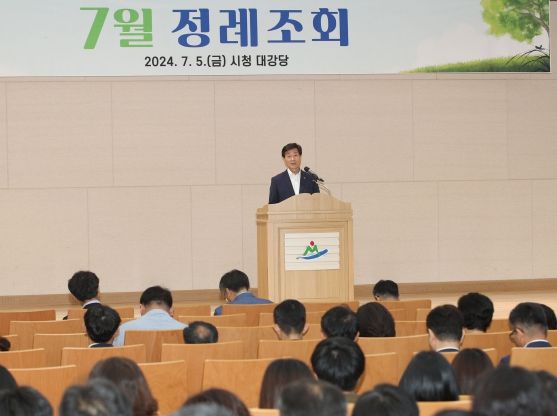 [경남도민뉴스] 밀양시는 5일 시청 대강당에서 본청, 직속 기관, 읍면동, 산하기관 직원 등 300여 명이 참석한 가운데 7월 정례 조회를 개최했다고 밝혔다.