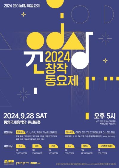 [경남도민뉴스] 통영국제음악재단은‘2024 윤이상창작동요제’참가자를 모집한다.