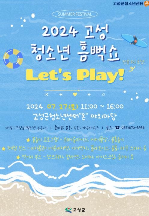 [경남도민뉴스] 경남 고성군은 오는 27일 오전 11시부터 오후 4시까지 고성군 청소년센터 온 야외마당에서 2024년 제2회 고성군 청소년 어울림마당의 일환으로 ‘2024 고성 청소년 흠뻑쇼’를 개최한다고 밝혔다.